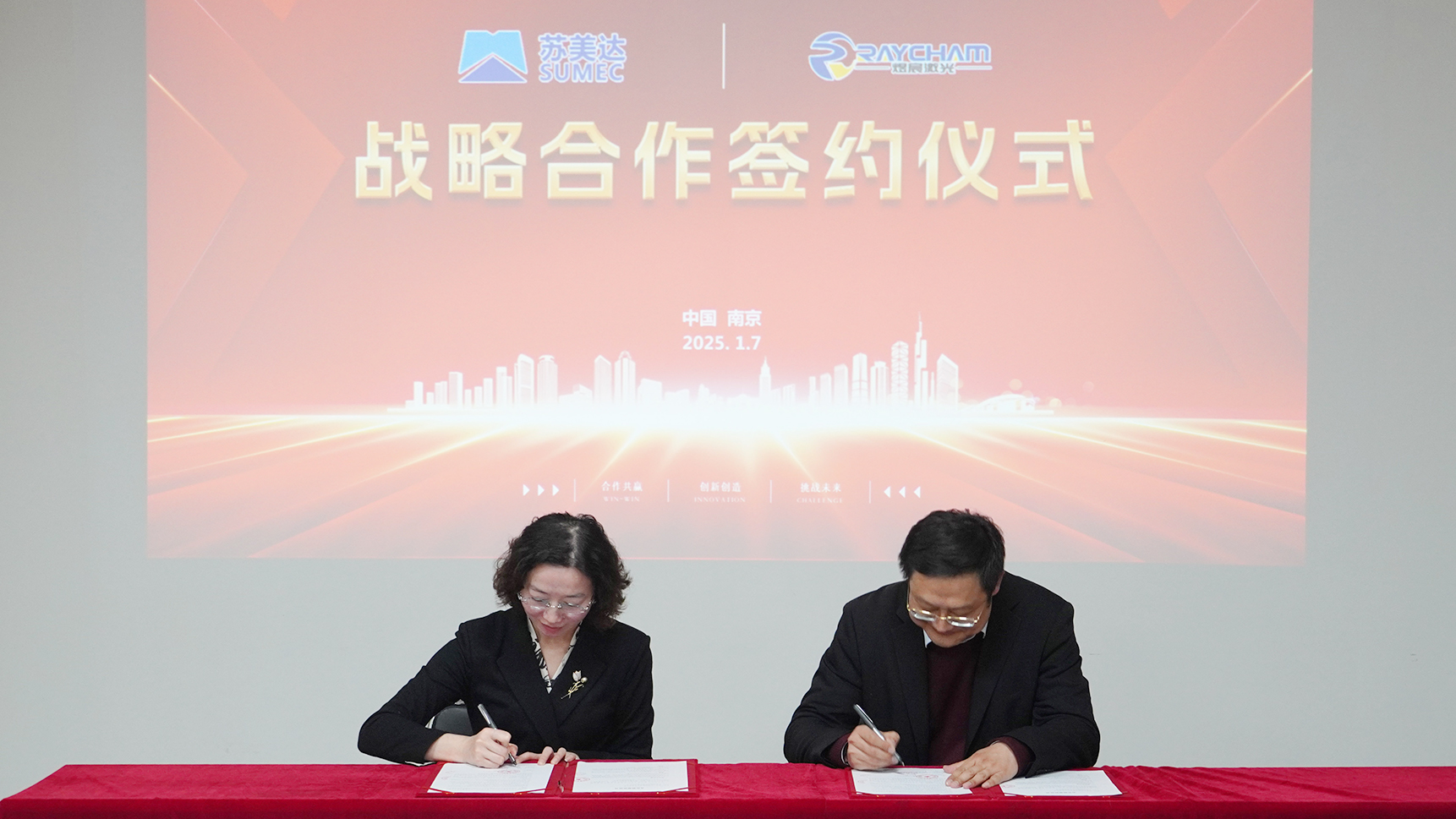 1月7日,南京中科煜宸激光技術(shù)有限公司(以下簡稱“中科煜宸”)與蘇美達國際技術(shù)貿(mào)易有限公司(以下簡稱“蘇美達”)簽訂戰(zhàn)略合作協(xié)議。雙方就激光智能制造設(shè)備海外市場開拓、出口業(yè)務(wù)合作等領(lǐng)域開展全方位合作。蘇美達殷文蘭與中科煜宸CEO邢飛出席簽約儀式。