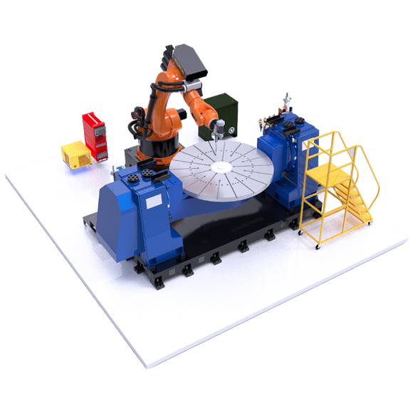 6軸重載機(jī)器人+2軸變位機(jī)機(jī)器人柔性激光/電弧金屬增減材制造裝備解決方案。