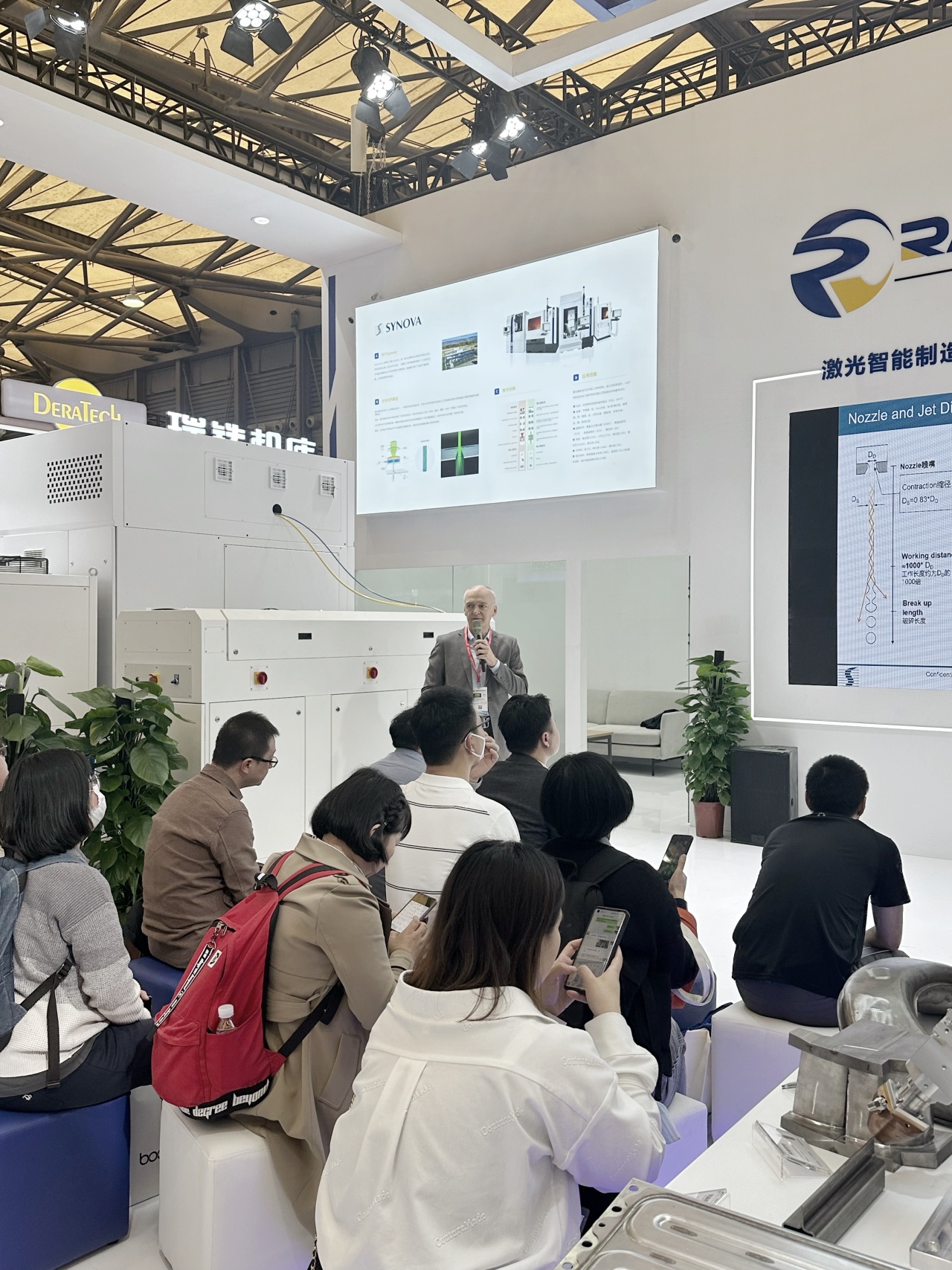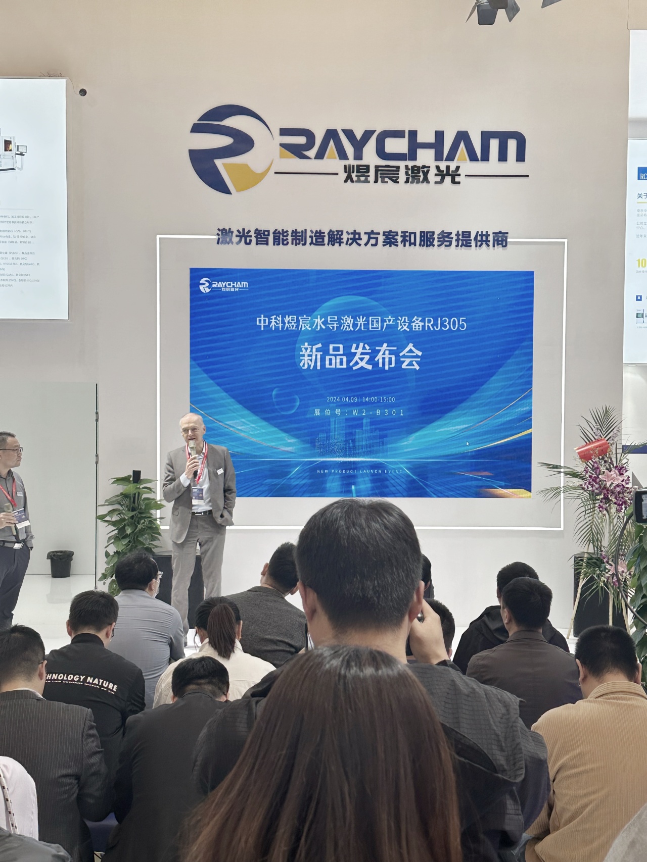 精彩紛呈的新品發(fā)布會上,中科煜宸鎖紅波先生介紹了RJ305的外觀性能并現(xiàn)場演示了設(shè)備加工過程。中科煜宸董事長邢飛先生、瑞士Synova創(chuàng)始人Bernold Richerzhagen先生先后致辭,將發(fā)布會氣氛推向高潮。